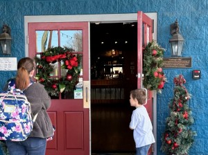 The first thing we see as we approach the restaurant’s front doors are a couple of Welcoming Christmas Wreaths. The entrance to the restaurant was also decorated with strings of white lights, Christmas garland, and a small Christmas tree right beside the front doors.