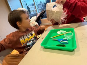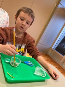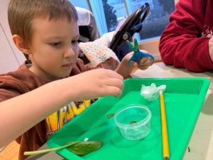This free night given to the community by Duke Energy was filled with STEM (Science, Technology, Engineering, Mathematics) activities throughout the museum. Coleman was so excited to be back in the museum, we didn’t get to every activity. He did enjoy the STEM science activity; it had him cutting and crunching green leaves to create Chlorophyll.