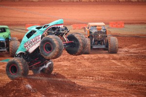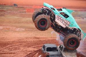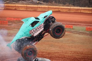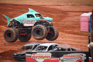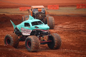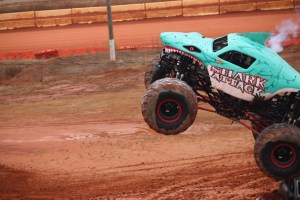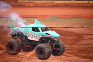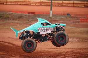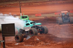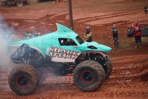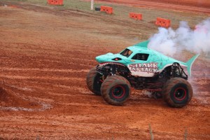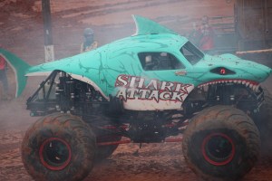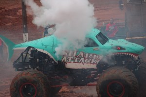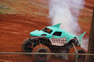 You may have noticed all the smoke coming out of Shark Attack, he was allowed to show off his freestyle skills before the final face-off. Shark Attack was loosing momentum and engine power. By the end of his run his engine blew and he was not able to continue to compete in the final round of the competition. (Coleman thoroughly enjoyed watching all the monster trucks, but was enthralled with Shark Attacks actions, jumps, and spin-wheeling.)