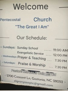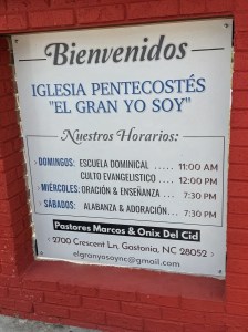 Location: Second Baptist Church; Iglesia Pentecostés “El Gran Yo Soy”; 2700 Crescent Lane; Gastonia, North Carolina, USA