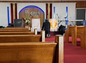 Discovering that it was a Spanish speaking church I asked Coleman if he wanted to go back home. He said, “No, he wanted to go inside and attend the service.” So, we went inside. We arrived at 11am, the time when most of the churches in the area begin their services. Turns out Iglesia Pentecostés “El Gran Yo Soy,” doesn’t begin their services until 12 pm. The church is open before then for anyone to come inside and pray.
