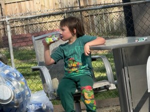 One never knows when Coleman will #PullUpaSeat or where he will #PullUpaSeat or what he’ll choose to #PullUpaSeat upon. It could be a chair, an outdoor fire pit, a Little Tyke Big Rig, or possibly a trampoline. Whenever he feels like Pulling Up a Seat, you can be one hundred per cent confident he’ll find something, somewhere to Pull Up a Seat.