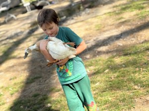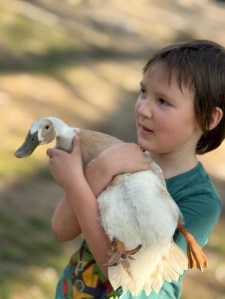 The Indian Runner Ducks may be known as fast runners, however, they were not fast enough to stop Coleman from catching them. They are also known to be prolific egg layers, producing white, hen-sized eggs. The females are able to produce approximately 150 to possibly over 300 eggs per year. (Too bad these don’t fly over the fence between our yards. If they did I wouldn’t need to buy so many eggs.)