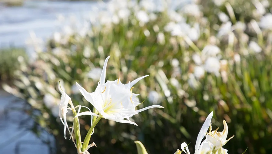 These images are from last year. This year’s Rocky Shoals Spider Lilies are not in full bloom yet. The Rocky Shoals Spider Lilies bloom each year along the Catawba River and can be viewed from Landsford Canal State Park. The best time of year to view the Rocky Shoals Spider Lilies is from May through mid-June. To view them from land, you may choose to hike the 1.5 mile, round-trip down either the Nature Trail or the Canal Trail to the overlook. There is another option to view the Rocky Shoals Spider Lilies, that option would be to kayak the Catawba River and wind your way through the Rocky Shoals Spider Lilies where you’ll have an upclose view.