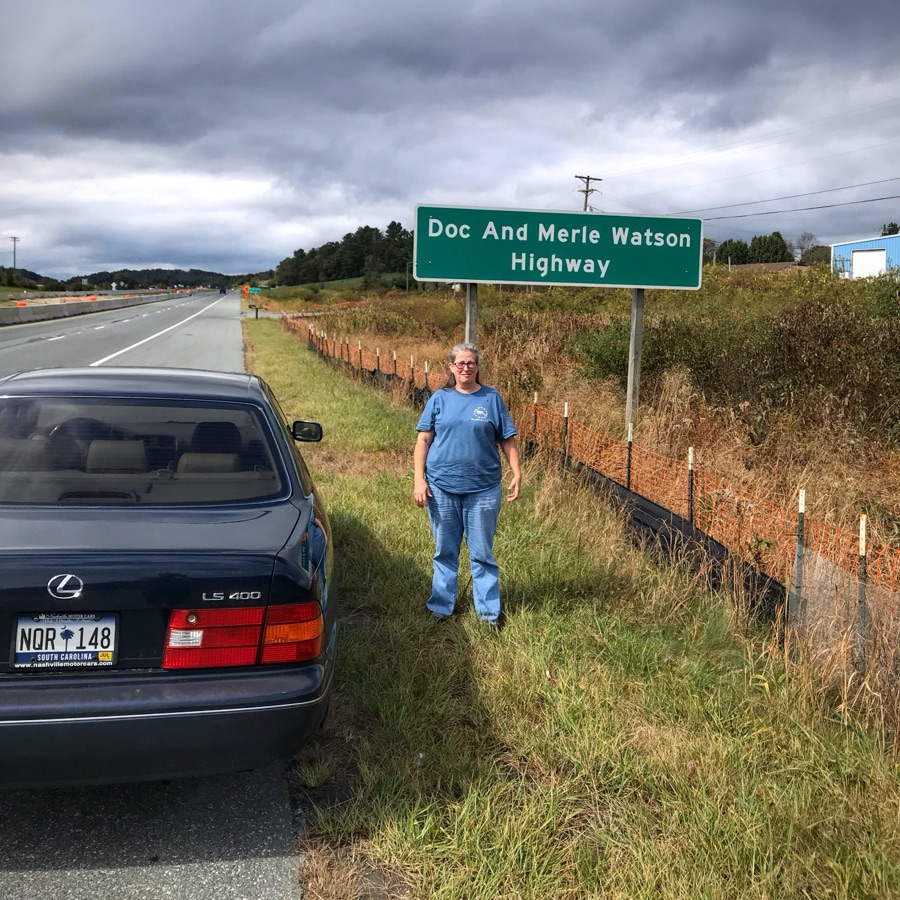 On the adventure South on the Parkway, we took a detour to my Cousin Jim’s Produce Market for some fresh produce & a break to stretch our legs. Before we arrived at Jim’s Produce, we stopped for a photo by the Doc and Merle Watson Highway sign ( Doc & Merle Watson are my fourth cousin & fourth cousin once removed respectively).