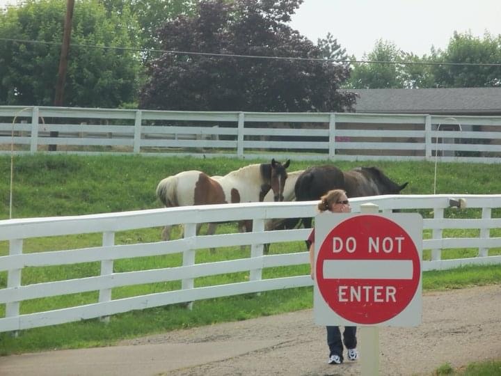 Of course my daughter ventures past the DO NOT ENTER sign to get closer to the horses.