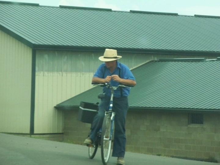 Back in the car, we cruise more of the countryside. Looking out our windows we observe Amish Buggies clip clopping down the road, Amish ladies strolling along a sidewalk, and young Amish boys/men cruising on their bicycles.