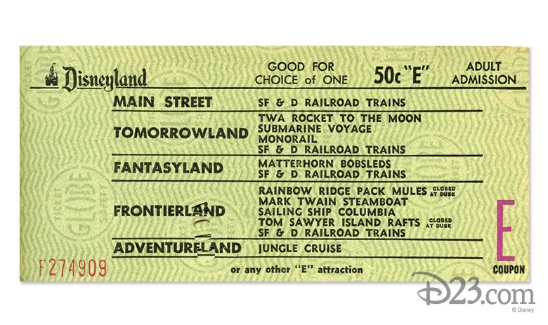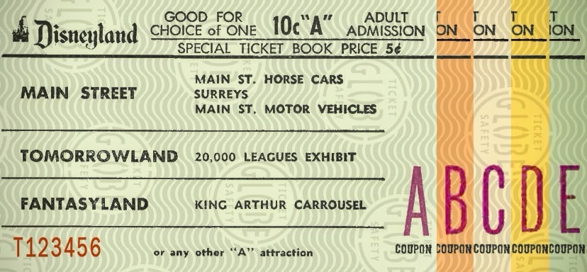 1965 Disneyland Ride Tickets A-ESelection of E Ticket Rides