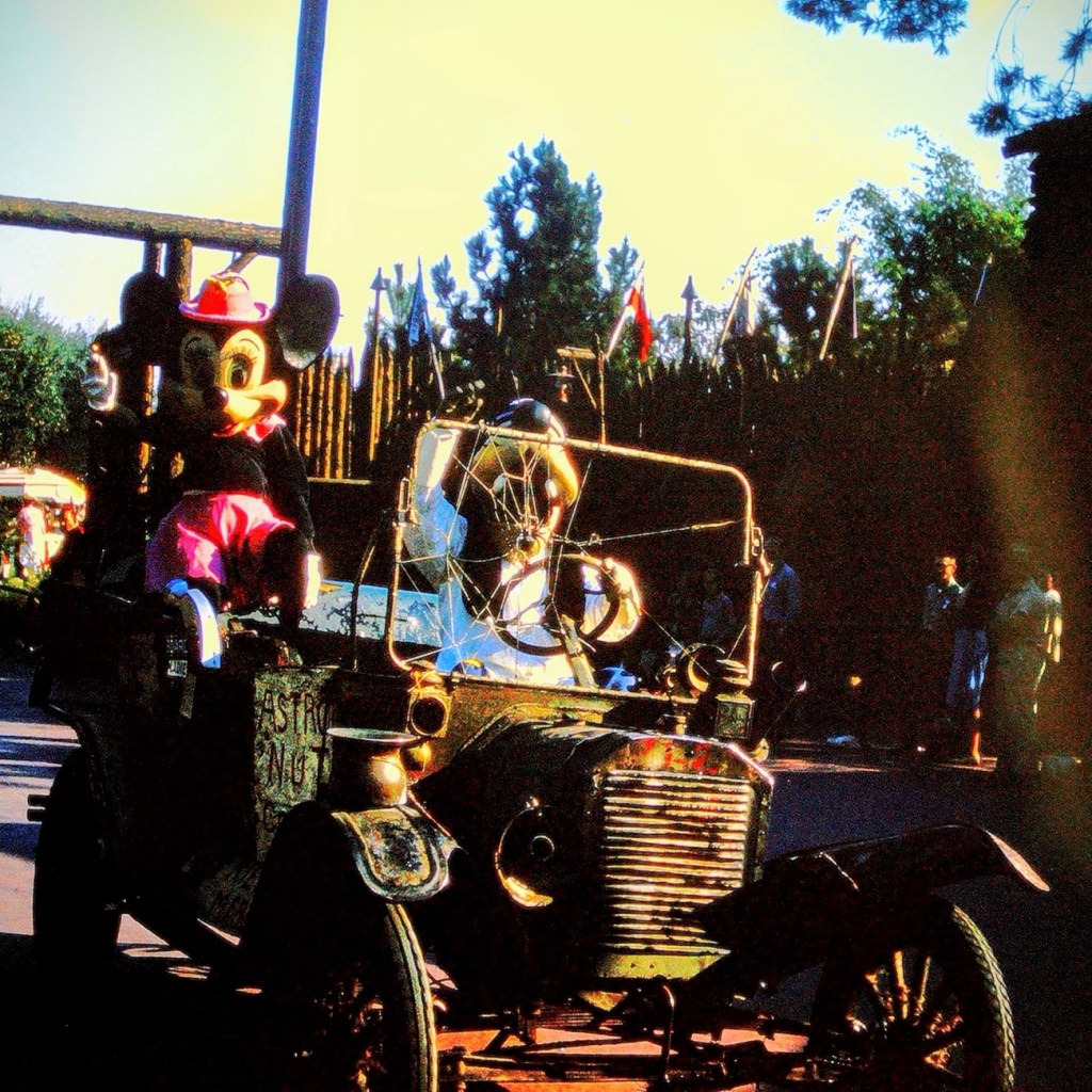 Mickey Mouse riding in a Vintage Car with Goofy1965 Disneyland Santa Claus Float