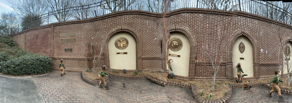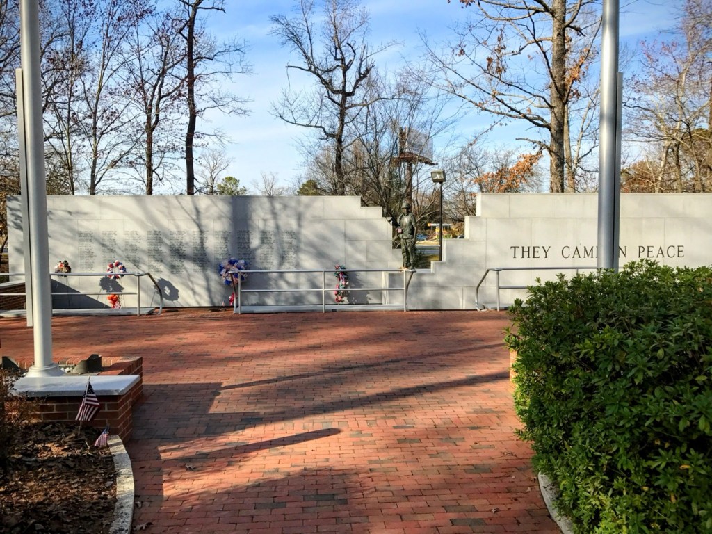 The above depicts the Veterans Wall in the Veterans Garden at Glencairn Gardens in Rock Hill, South Carolina. The Veterans Garden was created by the City of Rock Hill in partnership with the American Legion Post 34 and the Veterans of Foreign Wars Post 2889. It honors women and men from the past, present, and future who served in the United States armed forces.