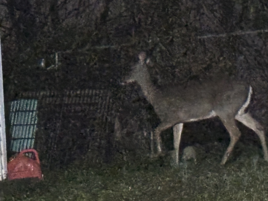 These were taken in the early dawn when it was still dark outside. I have cataracts and cannot see out of my left eye, it is difficult for me to see in the dark. Thus, these are not as clear as I would prefer but will still give you an idea of what Coleman was seeing coming out of the darkness.