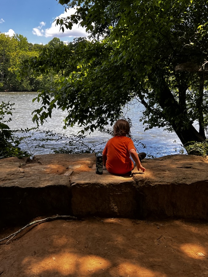 My last outing was on Friday after I picked Coleman up from the school bus stop. After stopping at home to allow him to change into shorts, gather drinks and snacks we proceeded to hike downtown to Goat Island Park and Greenway for a relaxing afternoon of hiking and fun.