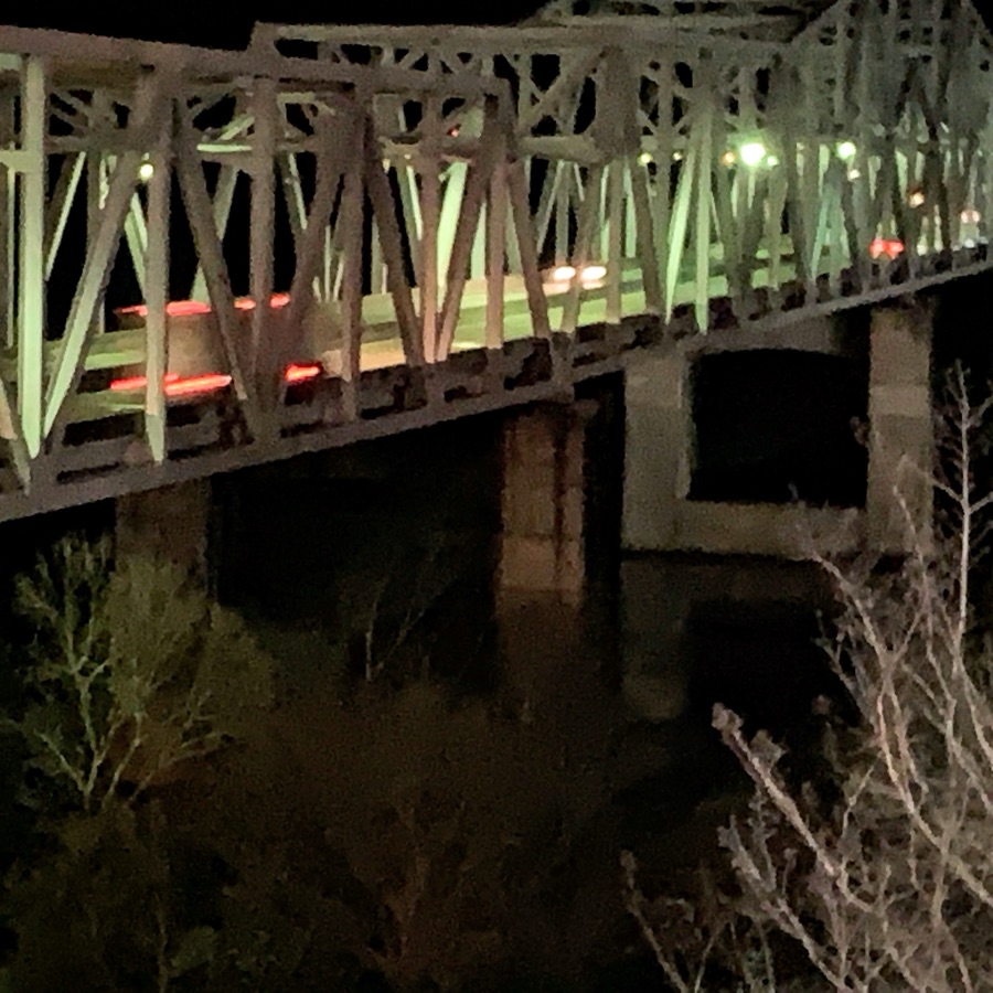 The Bridge over the Mississippi River in Vicksburg, Mississippi as seen at night while traveling back from Texas to the Carolinas in 2019. The architectural design is fascinating viewing all the angles, lines, triangles, and squares that were used to construct the bridge. The lighting helps the bridges features stand out in the evening’s darkness.