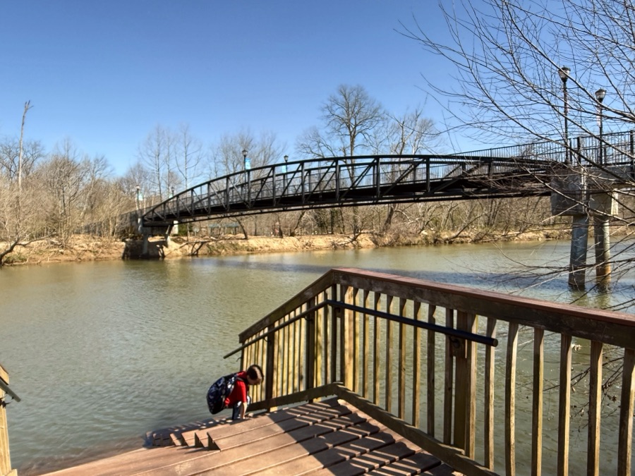 And then Coleman delights in playing and splashing in the Spillway at Anne Springs Close Greenway …