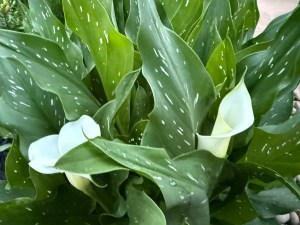 They are herbaceous, bulbous perennials with long, arrow-shaped leaves; some species have leaves with beautiful, window-like translucent spots. The uniquely shaped flower heads, consisting of small flowers in a spadix surrounded by a spathe, make great cut flowers. The spathe is usually white or green, but cultivars exist with yellow, pink, red, and purple hues. They bloom from late spring to early summer.