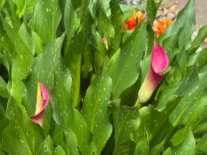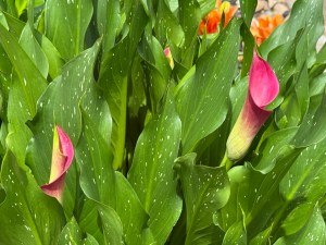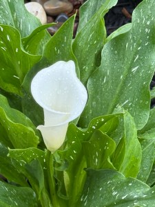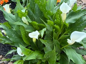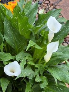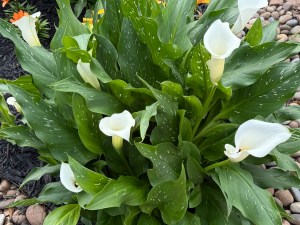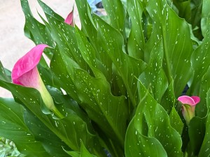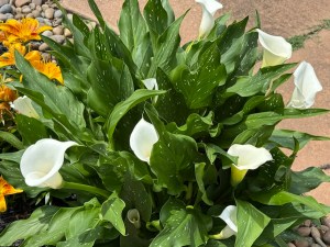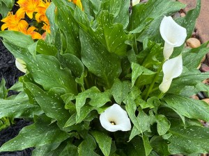 Calla Lilies can be grown in pots or in the ground. These images are of Calla Lilies grown in a small garden. ‘Calla lily’ is a member of the Arum family and is poisonous if eaten.