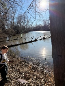 Before continuing on our hike, Coleman decided to throw sticks in the river. He likes to see the splashes that occur when he throws objects into the water.