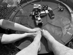 I decided to capture his water ripples in black and white thereby linking this post to Jez’s Water Water Everywhere, Debbie’s One Word Sunday-Repeat and Monochrome Monday.