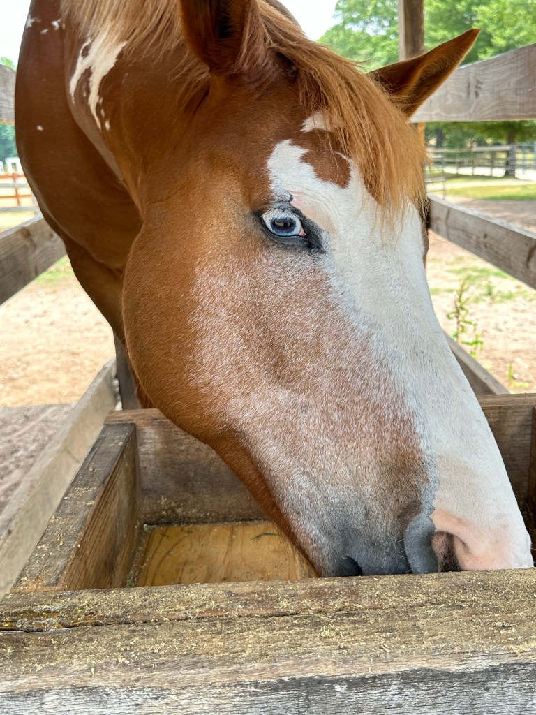 This horse’s EYE captivated my attention. The eye looked unusual, and it drew me to the horse. Greenway Horse Stables Anne Springs Close Greenway Fort Mill, South Carolina