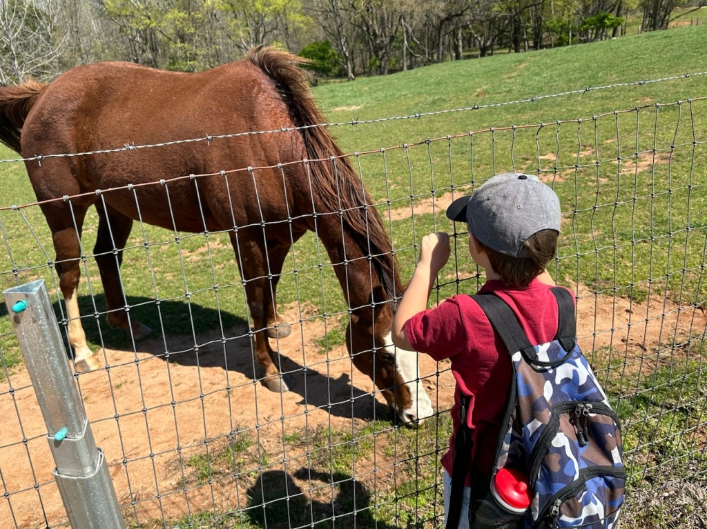 Once back on Dogwood, the trail leads us back to the horse stables and eventually back to our car (Mommy’s car as Coleman would say since I use her car to take him places.)
