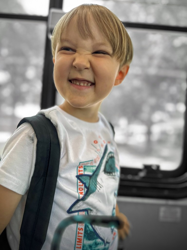 Coleman expressions on the busColeman having fun at the YColeman playing in the SandColeman going Round and Round in the MazeColeman in shades on his 4th Birthday 07/25/23
