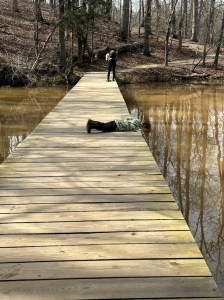 Coleman and I go hiking together every week and sometimes several times throughout the week. We do encounter Wooden Bridges along the trails we hike almost everywhere we venture to hike in the Woods. Hey, I just thought of something when I wrote that last statement … Trees are Made of Wood and when we cross Bridges Made of Wood we are surrounded by Trees.