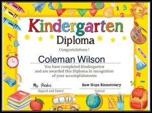 Okay, I’m done with my ranting and opinions on this subject. I did make my own Kindergarten diploma for Coleman showing he completed Kindergarten.