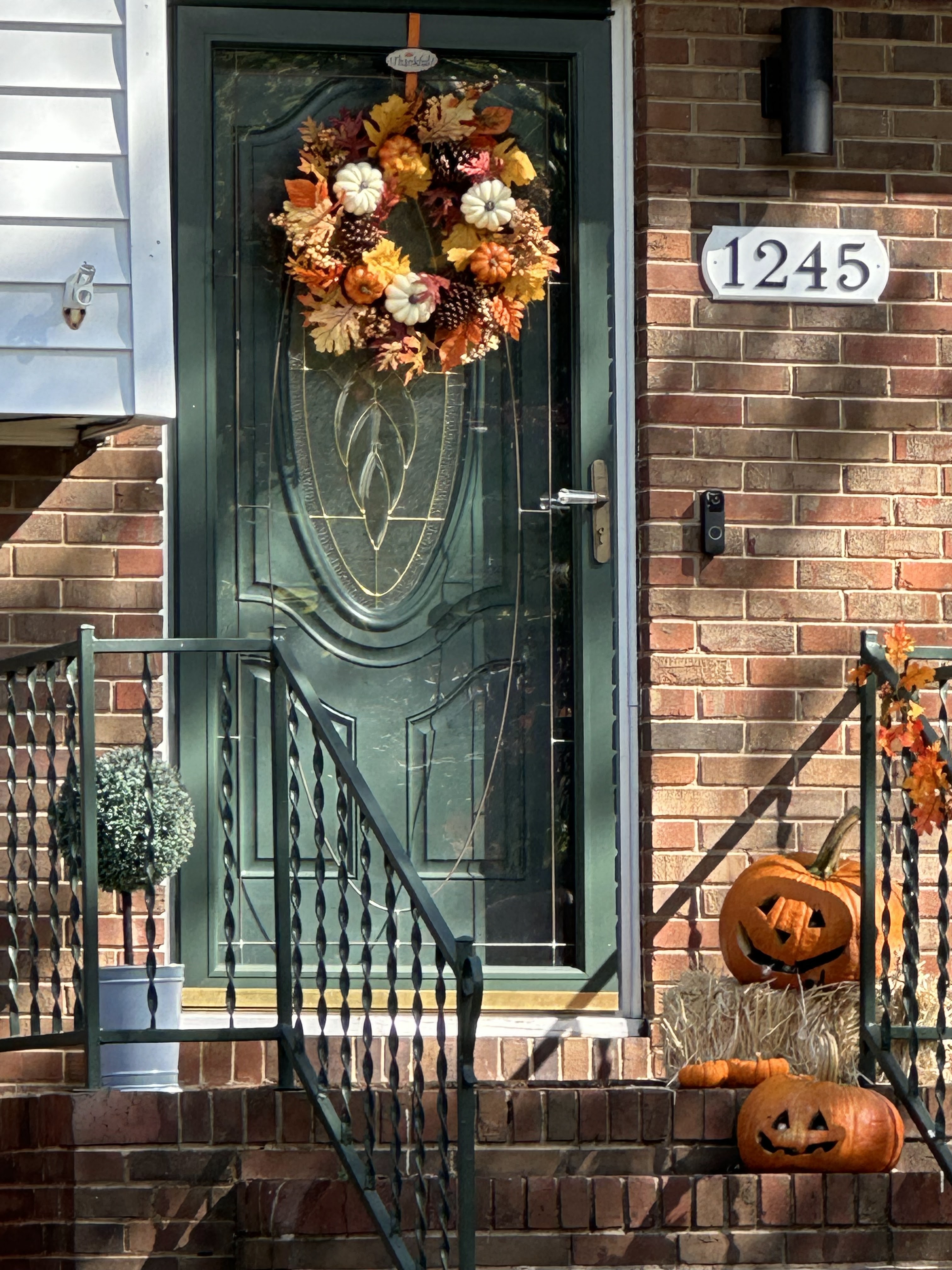 Decorations on Doors can be interesting and insightful this time of the year. Some choose to keep it simple; others minimalistic, and still others go all out in their decorations for Halloween. Whether you choose to decorate for Autumn or for Halloween is entirely up to you. Not everyone chooses to decorate their doors or their yards to coincide with the holidays/seasons. That is perfectly okay. Me, myself, I choose not to decorate the outside of our apartment for Halloween. It is a holiday I celebrated as a child, but as an adult I no longer do. These are a few doors I seen lately displaying Autumn/Halloween decorations.