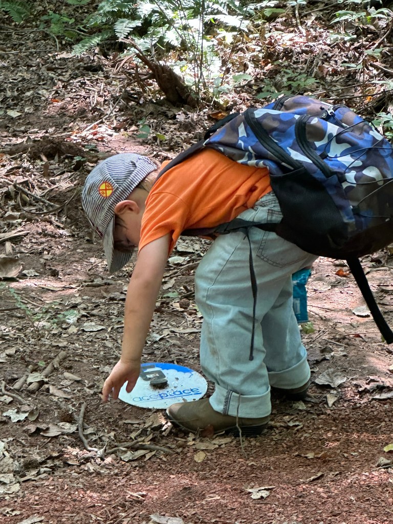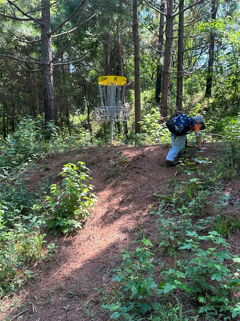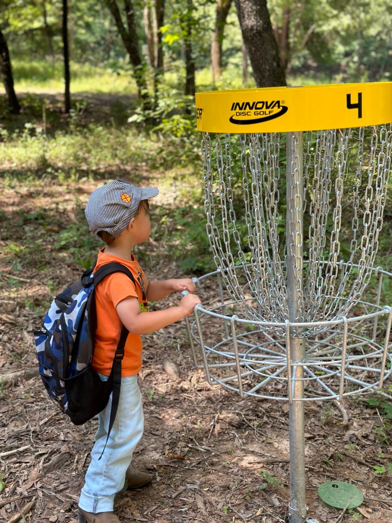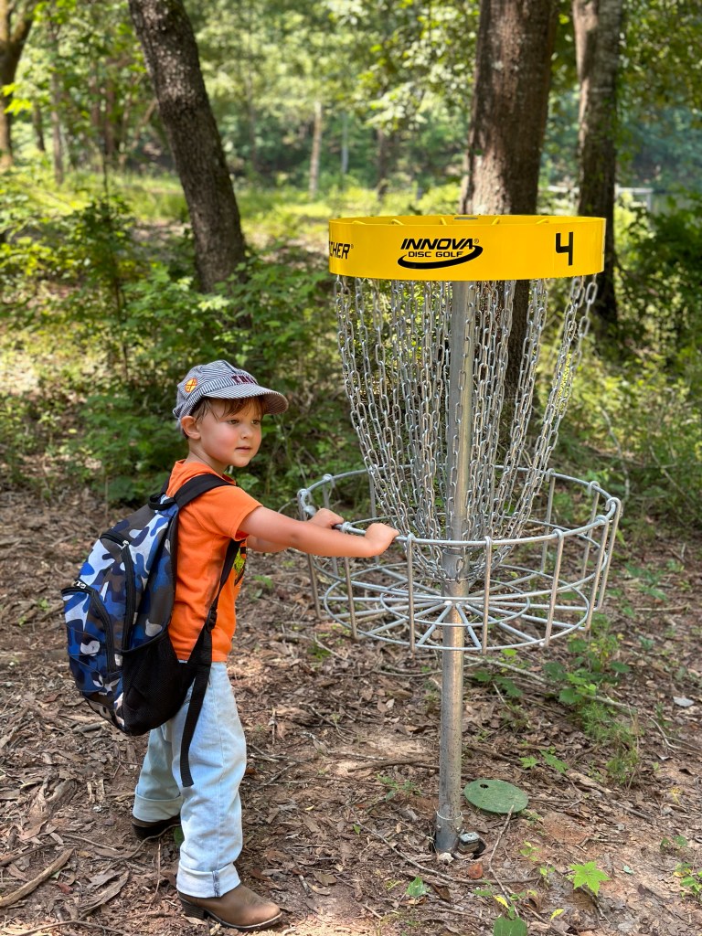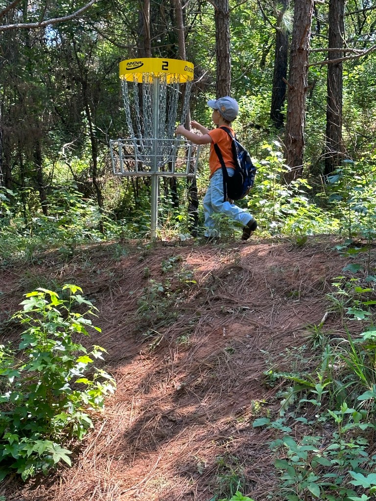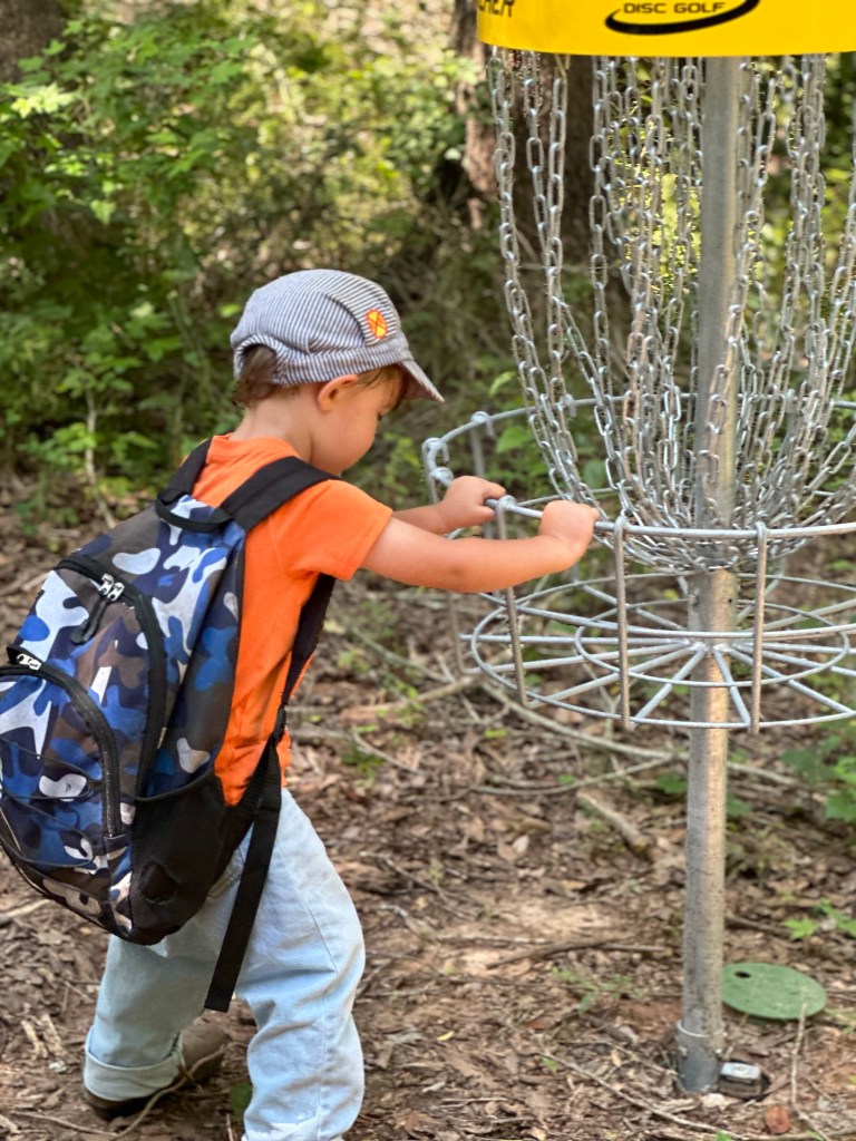 We started out along the paved hiking trail and meandered over to the dirt disc golf trail which runs simi-parallel to the South Fork Catawba River. While walking adjacent to the river, Coleman pointed out that there was a man standing in the river. This is not a normal sight when we are hiking. Therefore, we proceeded to investigate what the man was doing wading in the South Fork Catawba River.