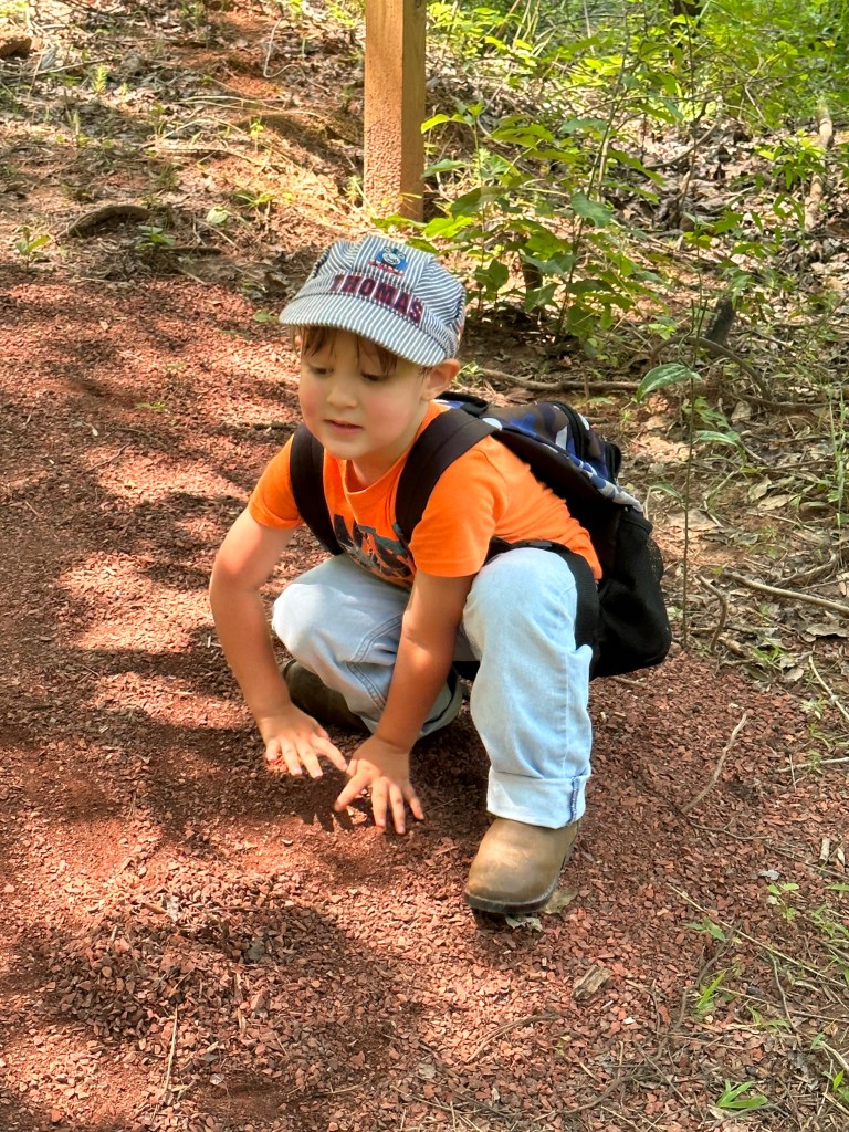 Coleman and I went hiking after he got home from school today (Friday). We walked downtown to Goat Island Park and Greenway. There weren’t any kids in the playground when we arrived, so I made a decision for us to hike along the trail first and then come back to the playground when we were finished hiking.
