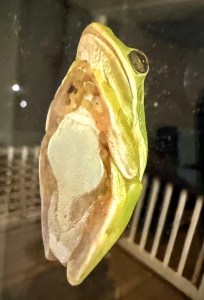At this point I’m not believing him. I’m not seeing any frog in the house, so how could there be a frog in the house. I inform him I do not believe him, he must be lying. He insists his not lying, that there really truly is a green groom the house.