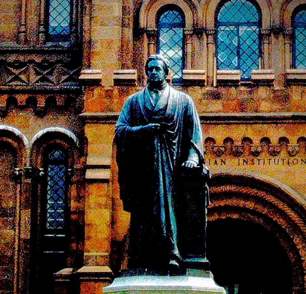 The Joseph Henry Statue is located at the entrance of the Smithsonian Institution Building, or “Castle.” Joseph Henry was the first secretary of the Smithsonian Institution from 1846 to 1878. The bronze statue of him was commissioned in 1880 and installed in 1883. At its installation it faced the Smithsonian Building (The Castle.) In 1965, the bronze statue was turned to face the National Mall.