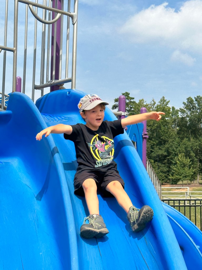 Coleman on Fitness Equipment Coleman on Fitness EquipmentAvon Creek Greenway Coleman at an Outdoor Table Warlick Family YMCAColeman on a Slide Warlick Family YMCAColeman Resting before getting on a bus to go home