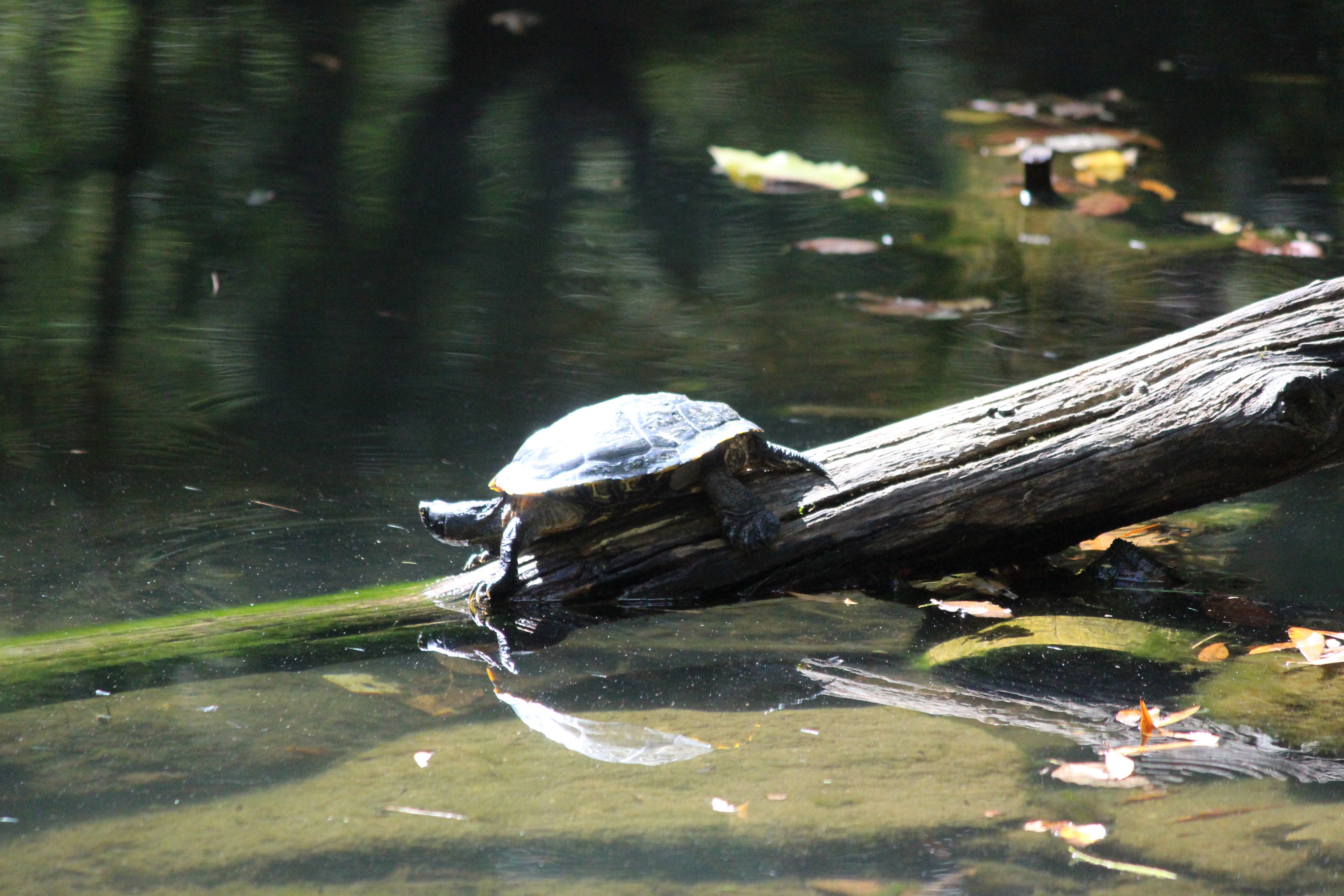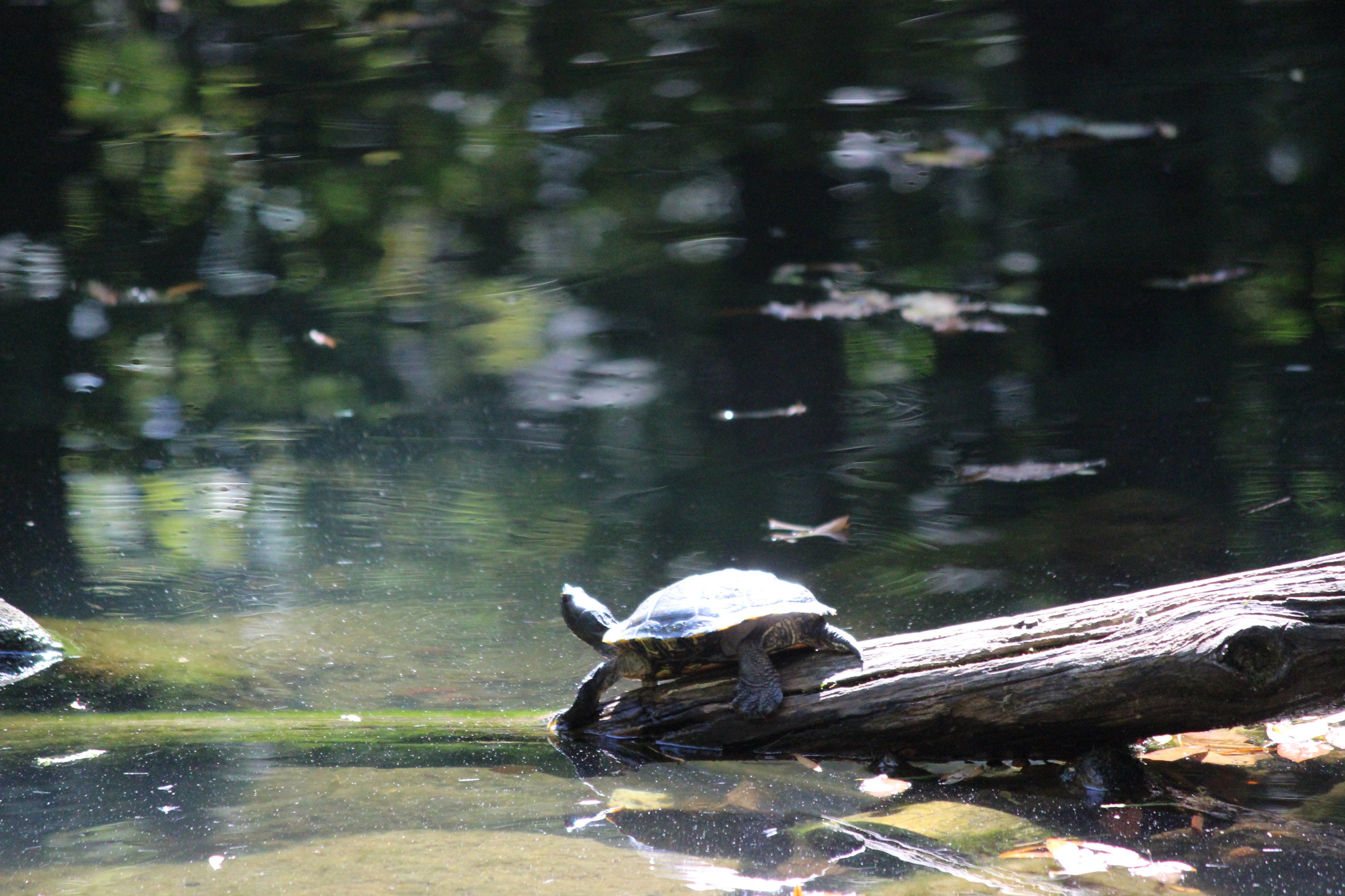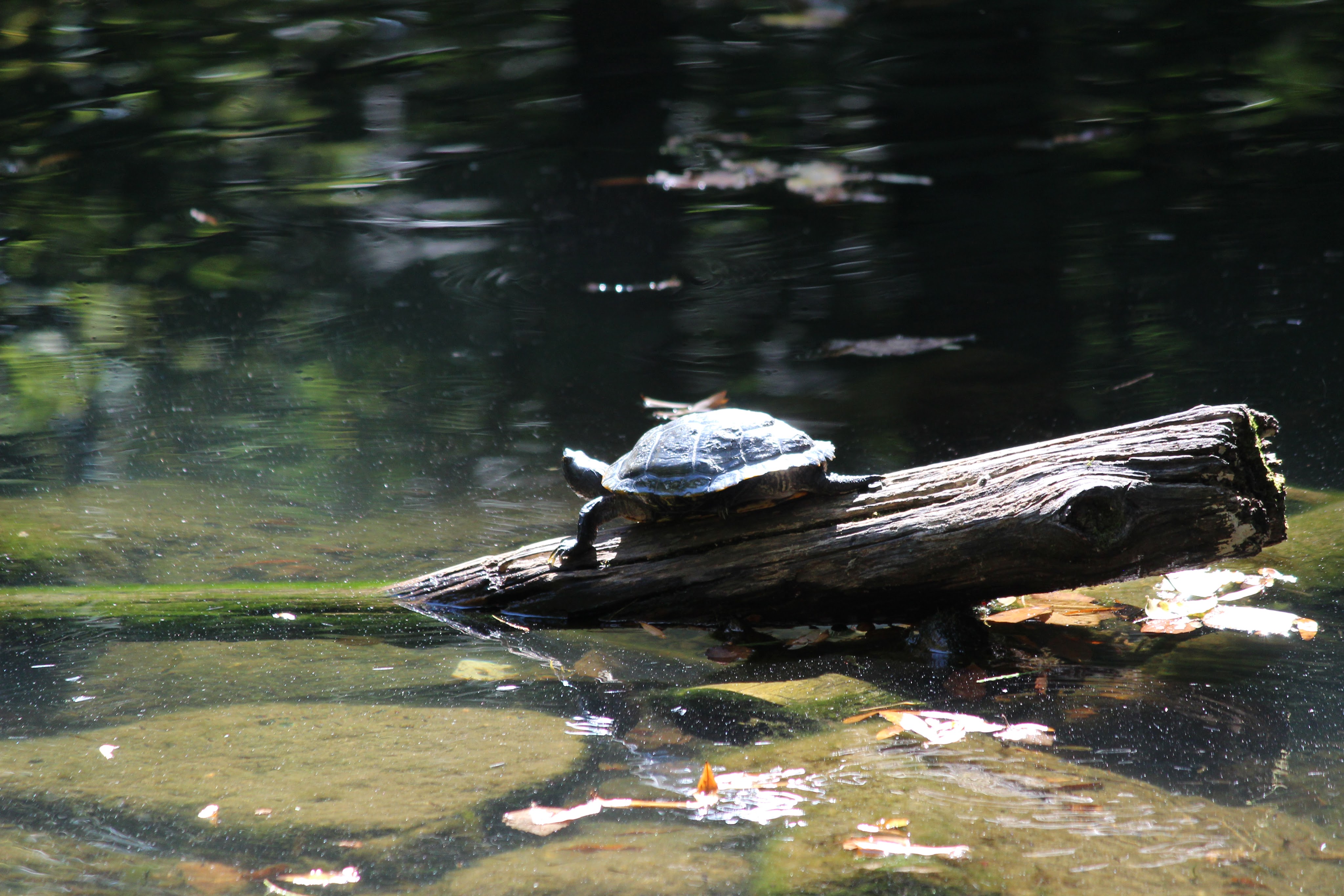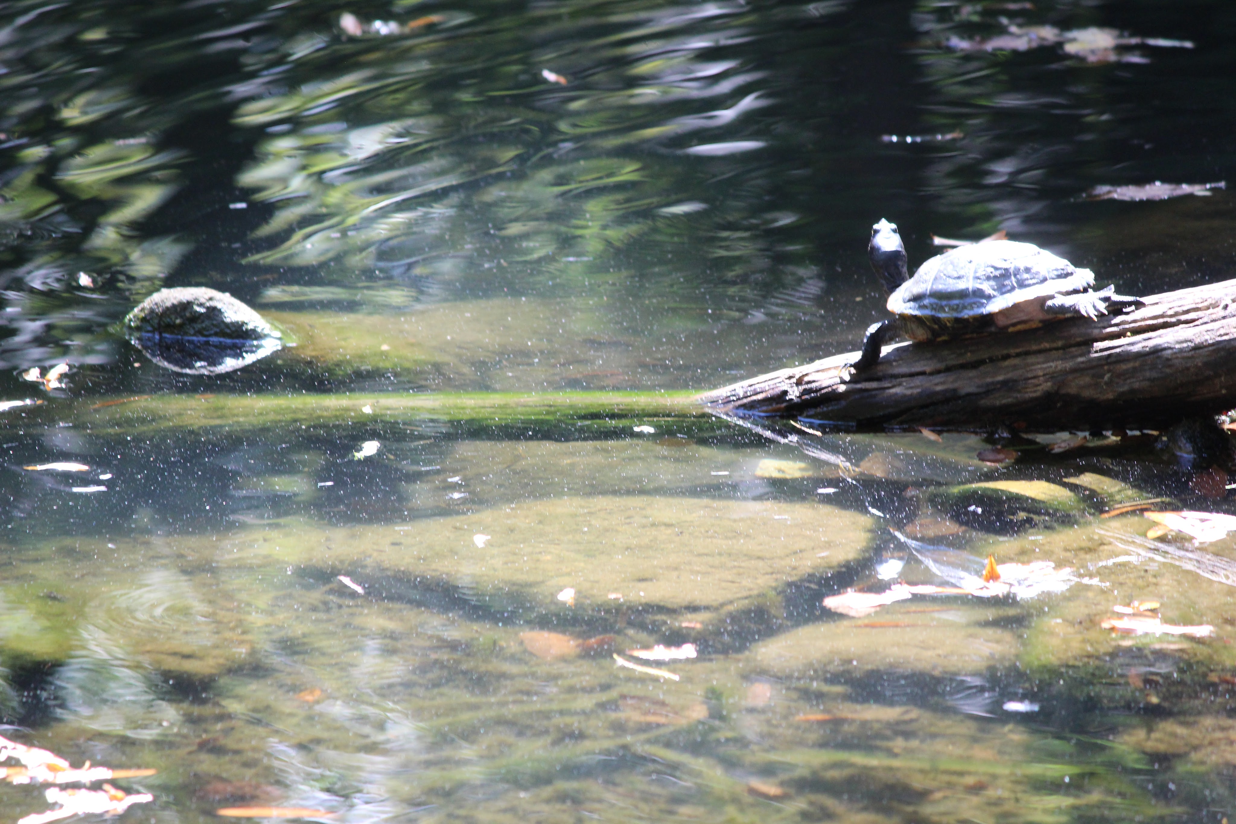 Coleman and I walked around the Pond at The Schiele Museum of Natural History’s Nature Trail on Saturday after participating in the Dinosaur Day’s activities. I was fascinated by the turtles in the Pond while Coleman moved onto the Playscape area to have some FunTime in the sand. I stood there for a few minutes watching the turtle move (his/her) head & tail around to catch better rays of sunshine.