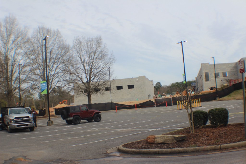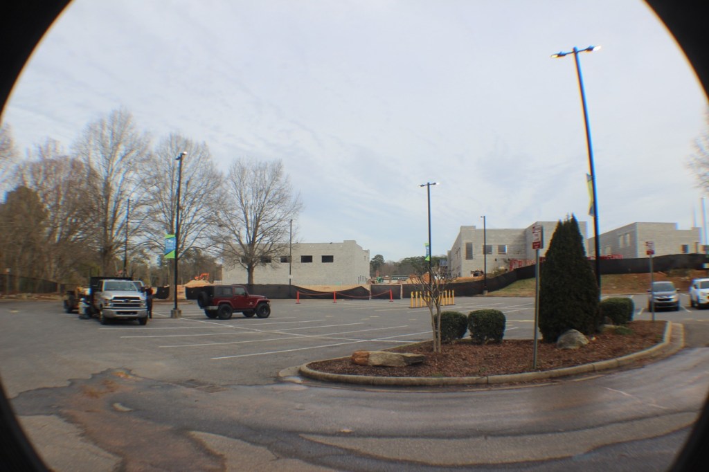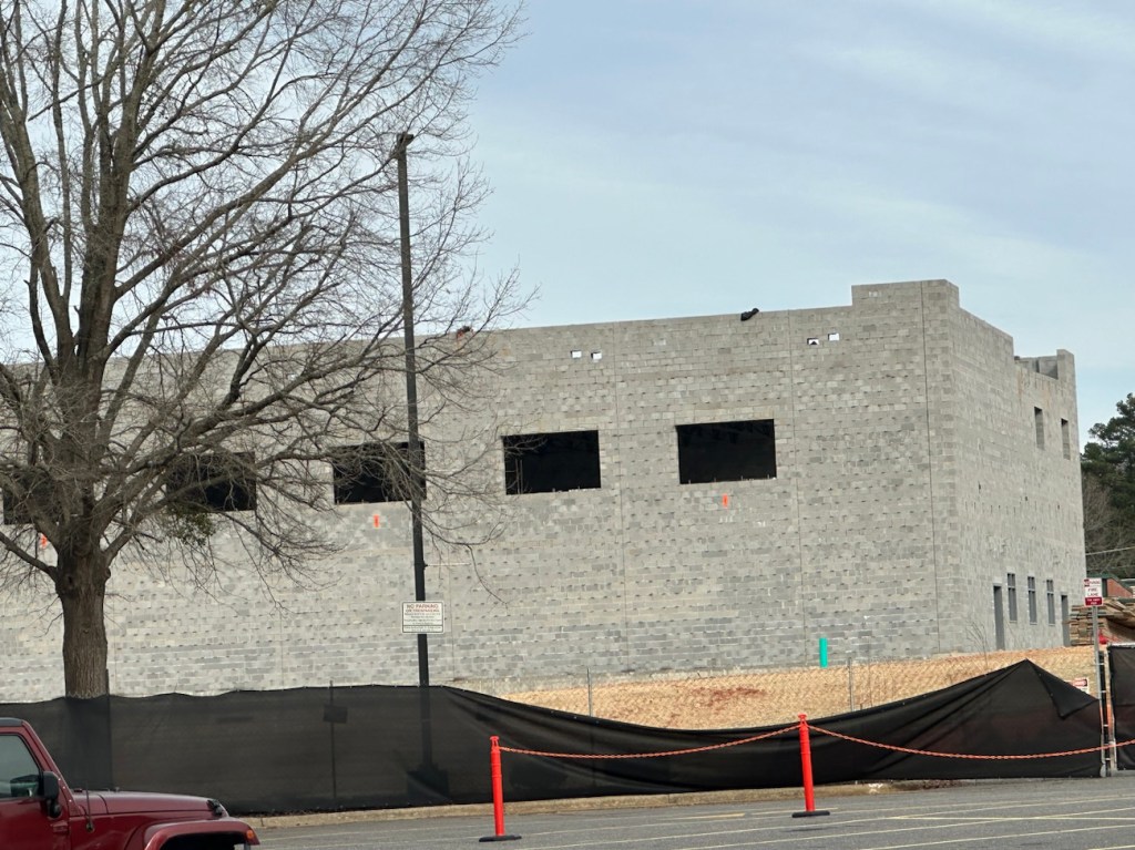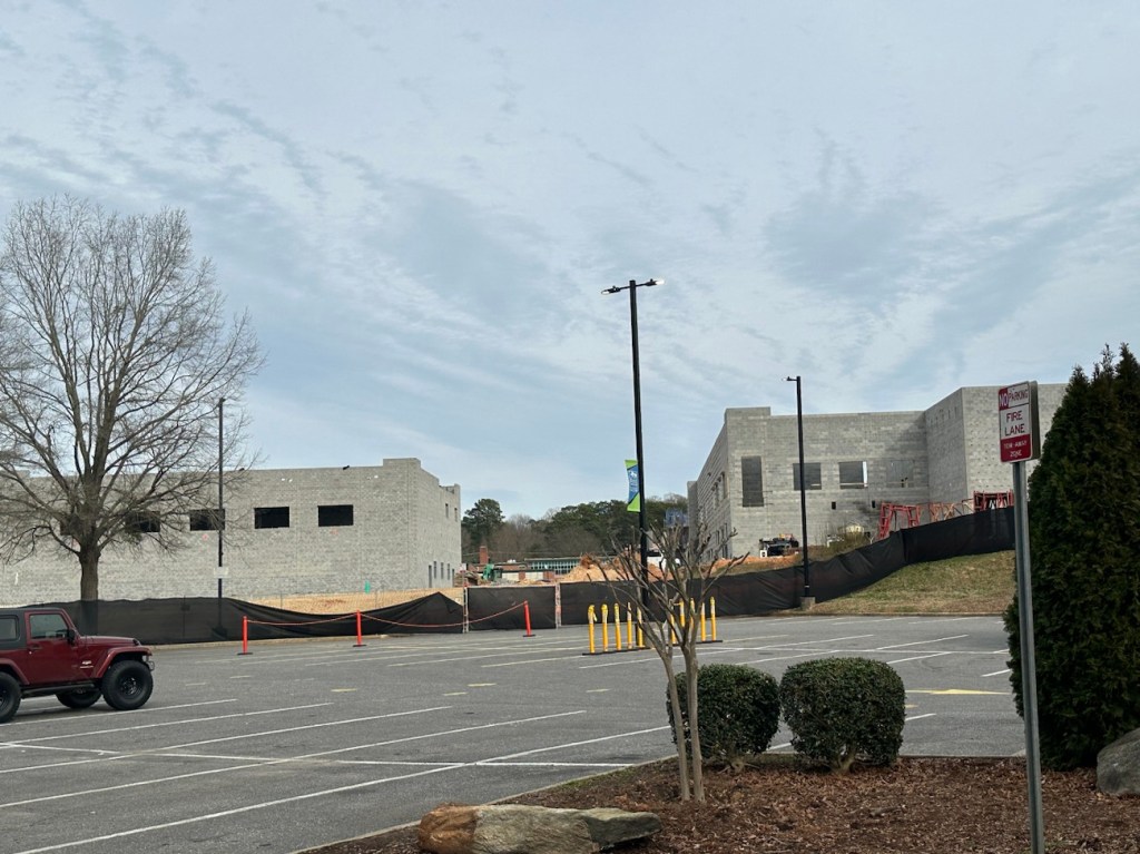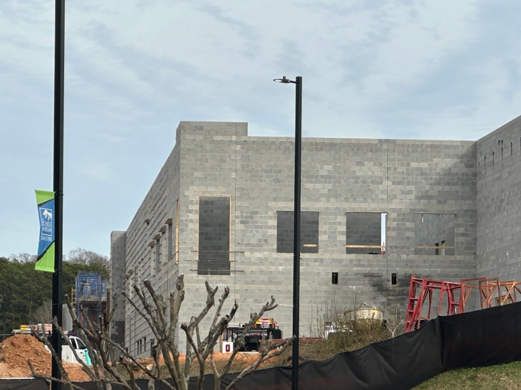 The construction of the new school is coming along nicely now that spring is on the way. You can observe the different sizes and shapes of the windows taking shape in the school buildings.