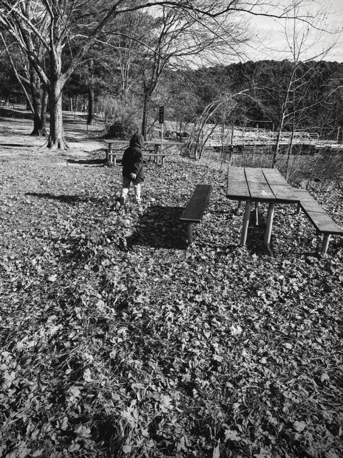 On Thanksgiving, my grandson, (Coleman) and I were joined by his mom for a lovely chilly afternoon. After devouring a delicious Turkey dinner (except for Coleman-He doesn’t like meat), my daughter (Trisha) drove us to a quaint park on the edge of Lake Norman called Ramsey Creek Park. At first, Coleman and I were not sure if his mom was going to join us hiking around the park.