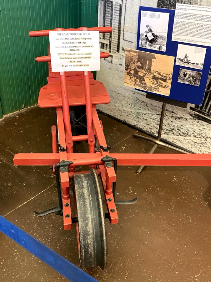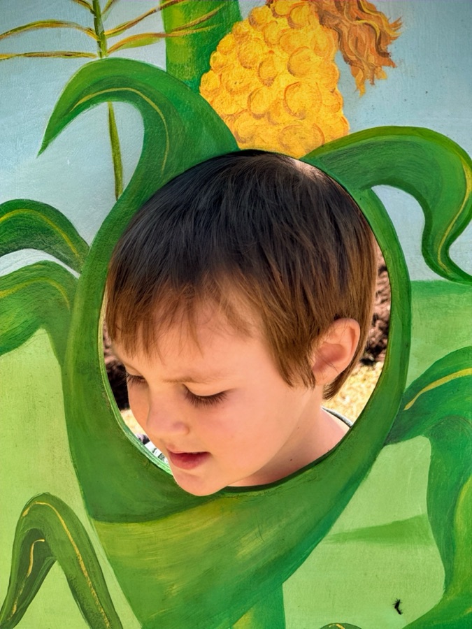Coleman testing out the Steering Wheel of a Tractor at The Farm at The Schiele Museum of Natural History.