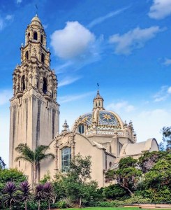 The large Tower to the left is known as the California Tower. It is a soaring, intricately detailed, portion of the CaliforniaBuilding and is an icon of San Diego which can be seen from miles and miles around. The California Building houses the Museum of Us (aka Museum of Man).