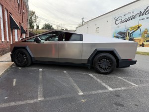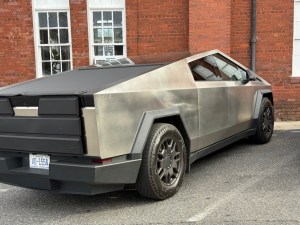 The 2025 Tesla Cybertruck is an electric pickup truck which has a distinctive stainless steel, wedge-shaped design. [When Coleman and I saw this Tesla Cybertruck near the Post Office in Downtown Cramerton it reminded me of the “Back to the Future’s” car. I know the “Back to the Future’s DeLorean DMC-12 does not exactly look like the new Tesla Cybertruck, but it to me back to memories of watching the “Back to the Future” movies with Michael J. Fox.]
