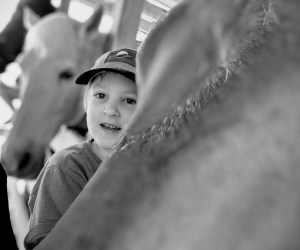 Coleman petting a rider’s horse Anne Springs Close Greenway