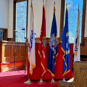 Each of the five (5) pillars represent a branch of the United States Armed Services; Army, Navy, Marine Corps, Air Force, and Coast Guard. The pillars (monoliths) are composed of white marble.