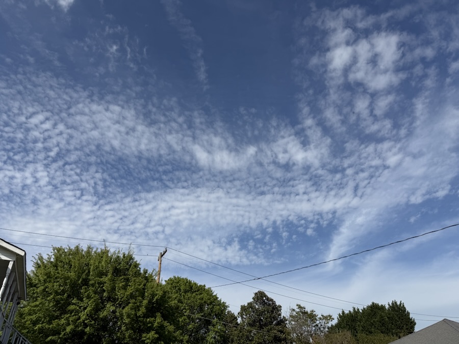 Fluffy cotton-like cloudscapes scattered our late afternoon/early evening skies. I’m not sure which type of clouds these are. Hammad, how are you on deciphering cloud formation types? Are they Altocumulus or possibly cirrocumulus stratiformis?