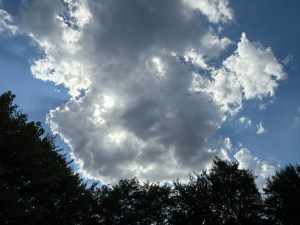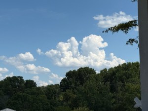 Most mornings lately we have had cloudy skies; some white clouds and some dark thunderous clouds, but today not so.