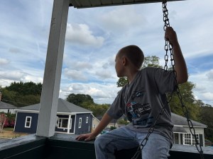 It flip-flopped from rainy to warm & cloudy back to dark rain clouds with more rain on the way. It makes it hard to know when it’s warm enough for Coleman to play outside. On this day outside playing didn’t last long with the tempting rain clouds bearing down upon us.