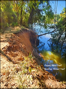 As Coleman and I were walking along the Carolina Thread Trail with all the twists and turns we wound up at a dead end. Not knowing which way to go from there we tried this trail and that trail without much success. Thinking we might be Lost as we kept trying to figure our way back out of the trail and back to the Trailhead Store where our adventures began; we spotted a few construction vehicles working across a road from the trail we were on.