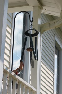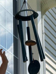 As Coleman and I were walking up from the River by the White Church Coleman noticed a wind chime. He decided to go check it out & see how the chimes sounded.