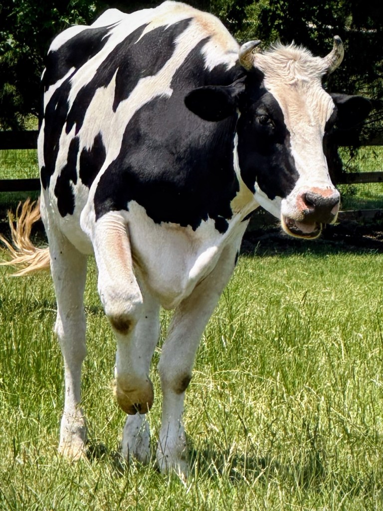 In April of 2024 I was moved to the Crandall Bowles Children’s Farm at the Greenway’s Stables and Farm Entrance. I have made new friends both four-legged and human. My best friend is Clarabelle, a black and white Holstein cow.