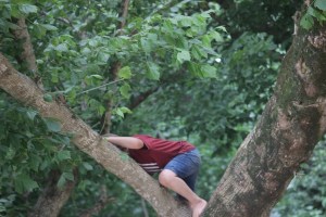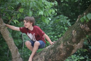 Coleman on top of a climbing apparatus in the Goat Island Playground.