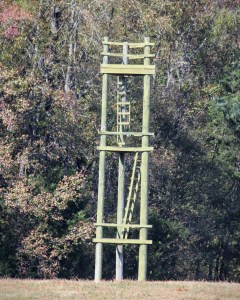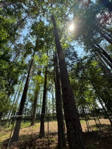 As we move along the Disc Golf Trail the lines in the disc golf catcher can be readily seen. Looking up ahead is the fence line with both vertical and horizontal boards.