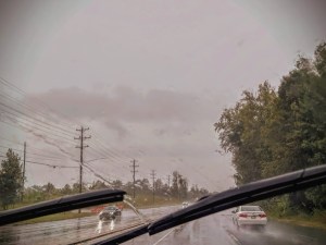 Whether traveling by car or hiking on foot there are times we run across storms and/or clouds in our pathways/roadways. These are a few examples of what we have endured in our adventures.